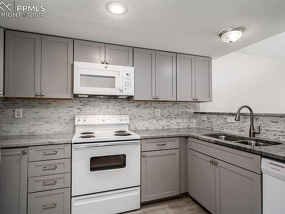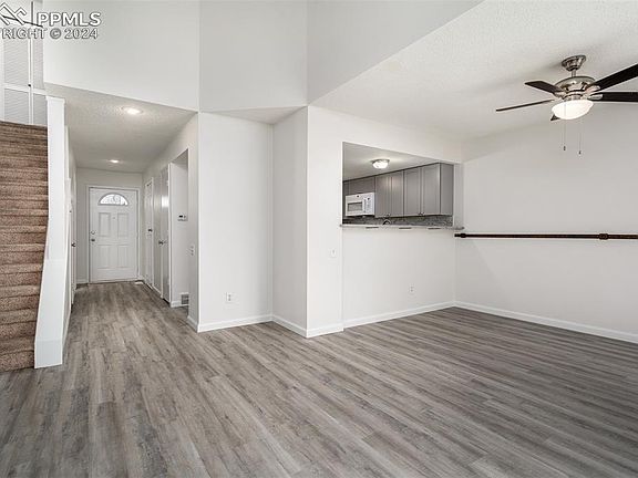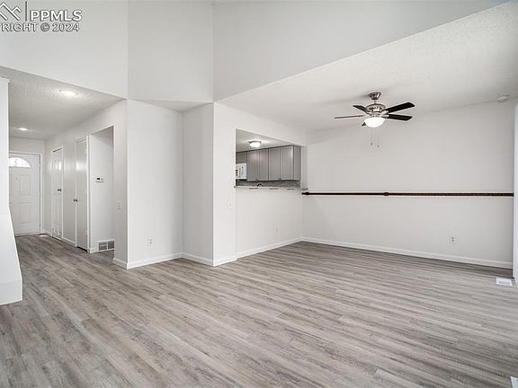 Welcome to this upgraded townhouse that is completely move-in ready! Upon entering this home you are greeted with new luxury vinyl plank flooring throughout the main level and a fresh coat of paint throughout! A recent kitchen remodel added new cabinetry with soft-close drawers and cabinets, a stylish backsplash and the most beautiful Mercury Quartz countertops I have ever seen. A sunny dining area with walk out to the deck will make for a pleasant al fresco experience this summer! A cozy living room with high vaulted ceiling completes the main level. Venturing upstairs, the Primary suite has a large walk-in closet, a spacious en-suite and corner windows to showcase the beautiful mountain views. A generous sized secondary bedroom is just across the hallway, with laundry upper-level laundry space as well. Quickly access I-25, Fort Carson, Peterson Air Force base, Colorado Springs Airport, and very easy drive to downtown. Very close proximity to Valley High golf course, parks, hiking/biking trails and all the various activities and hobbies in your new EASY lifestyle.