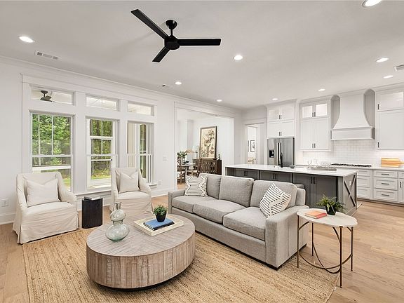 New cottage floorplan - Pearl's Eagle! This model is 3 bed/3 bath + Study, 2372 sq.ft. on 1 level with expansive rear screen porch & stack stone gas log fireplace. The kitchen has Bosch appliances and large island with a farmhouse sink. Soft-close cabinetry, quartz countertops, crown molding, 10 ft. ceilings with 8 ft. doors throughout home! Laundry room has lower cabinetry with folding counter and laundry sink. Gas fireplace with tile surround & 8' built in cabinetry in living room with a view of the screened porch. Home comes with an attached double garage & golf cart garage. Storage area over garage has ample space and can be additional living space in the future as it is framed & plumbed for a bonus room & bath.