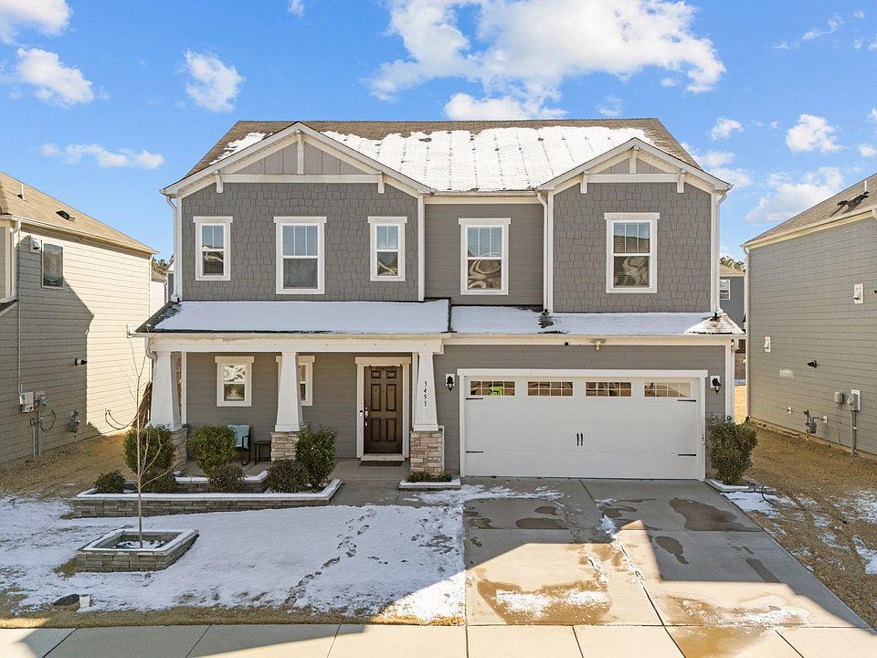 This stunning 5-bedroom, 3-bathroom single family home, built in 2020, offers modern elegance combined with the comforts of everyday living. The covered front porch welcomes you home and adds a charming touch to the curb appeal. Step inside to discover an inviting open-concept living area that seamlessly connects the spacious living room, cozy breakfast nook. The gourmet kitchen is a chef's delight, featuring a massive island, gas cooktop, built-in oven, microwave, and a walk in pantry, making meal prep a breeze. Retreat to the expansive master suite, where you'll find a tray ceiling, a luxurious ensuite bathroom with dual vanities, a walk-in shower, and an oversized walk-in closet that provides ample storage. The versatile game room serves as a central hub, leading to three additional nicely sized bedrooms, ideal for family or guests. Enjoy outdoor living in your fenced backyard, perfect for pets or gatherings. Located in a community with excellent schools, you'll have access to a refreshing pool, a playground, and scenic walking trails. Conveniently situated in a prime Apex location, you're just minutes away from TMSA K-12 charter school, shopping, major highways (540, 64), and the serene Jordan Lake. Don't miss the opportunity to make this beautiful house your home! So much to love! Renter is responsible for all utilities and Landscaping. Minimum 12 months lease required! No Smoking Allowed!