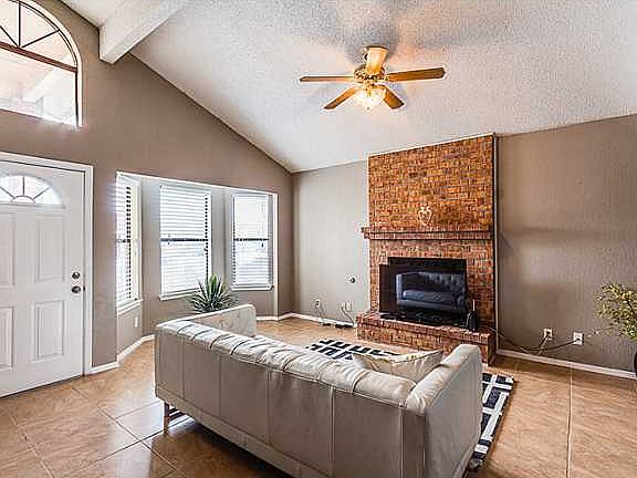 Cute home with tile flooring throughout the house, living room w/ fireplace, high ceilings, kitchen with separate eating area. Stainless steel appliances, stove, dishwasher and refrigerator. Home is also equipped with refrigerated air. Extra plus new roof. Home is occupied, please make appointment with listing agent for showing.