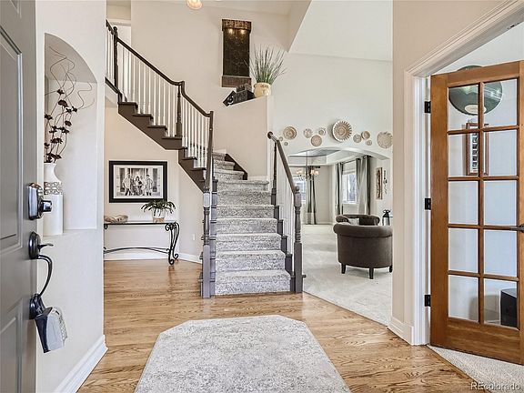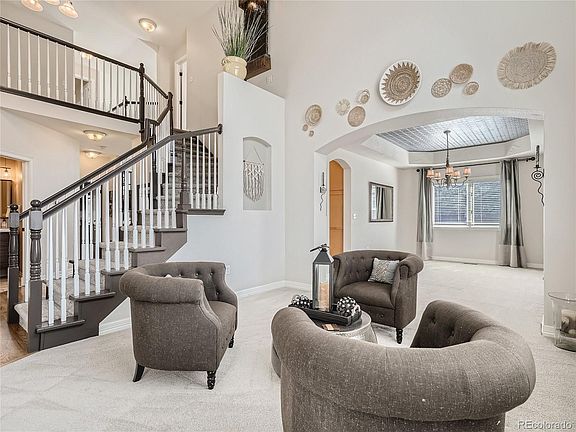 Welcome to this beautifully updated two story home located in the prestigious Legacy Ridge golf community. You will appreciate the many updates and upgrades this home has to offer. The elegant curved staircase leads to the loft area overlooking the family room. The gourmet kitchen was thoughtfully remodeled featuring honed granite counter-tops, rich birds-eye maple cabinetry. A true Gourmet chefs delight with Viking gas cook-top, stainless vent hood, double ovens, warming drawer and wine refrigerator. The family room is bright and open with wall of windows, featuring a stacked stone surround at fireplace. Formal dining room with tray ceiling. Main floor office with french doors. Everyone needs a mud/laundry room like this one. Dual storage closets, shelving and cabinetry for all your home storage needs. The primary suite is large and the bath has recently been re-modeled. The finished basement has a huge rec. room with wet bar. 5th bedroom, bath and storage room. Whole house water purifier. Enjoy the beautiful Colorado evenings in your backyard complete with outdoor kitchen, granite bar top Traeger smoker, Napoleon grill and outdoor refrigerator. Then take a dip in the hot tub. All this and located a short distance from the Legacy Ridge Community pool, pavilion and tennis courts.