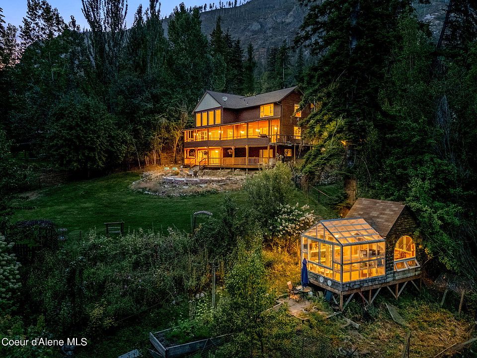 Welcome to your dream retreat in Bayview, Idaho! This exceptional Cape Horn residence offers incredible views of Pend Oreille Lake and a serene, expansive setting that combines comfort with natural beauty. With 4 bedrooms and 3 bathrooms and over 3,000 sq ft, this home provides ample space for both relaxation and entertaining. The property sits on over half an acre and includes a detached 2-car garage and a spacious back deck, perfect for soaking in the picturesque lake scenery. The meticulously landscaped garden is a true highlight, featuring a state-of-the-art greenhouse and an array of lush plants. Enjoy fresh produce from your own vegetable garden, and delight in the beauty of snapdragons, apples, pears, blackberries, hydrangeas, cherry trees, sunflowers and so much more. Inside, the home exudes warmth with its real wood floors and two inviting wood stoves. Located just minutes from the marina, public swim area, and boat access.