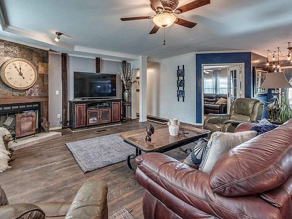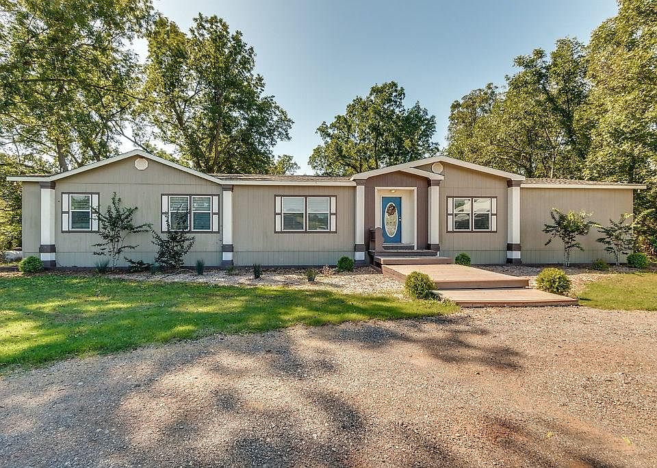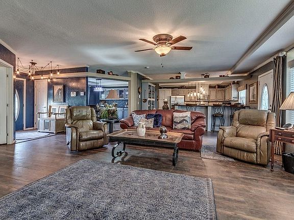 QUIET LIVING. TOTAL PRIVACY, great location. Property loaded with trees & pastures on paved road, just 1/2 miles outside city limits. 47.29 acres MOL w/3 ponds. Driveway lined w/fruit trees. High quality Solitaire manufactured home--2,624 sf 4 bedrooms (or 3 bedrooms plus office) & 2 baths, built in 2014. Detached 3 car garage/shop (1920 sq. ft.) w/living quarters, kitchen & bathroom facilities, additional 1000 sq ft loft storage. Beautiful kitchen w/stainless appliances, copper farm sink, granite counter tops, cabinets, & gorgeous center island. Large open living areas w/wood burning fireplace. Dining w/uilt-in buffet/china cabinet. Master suite is large w/5-piece bath in-suite & 170 sf (room sized) closet w/many built-in dressers. Large laundry room w/sink, good storage, backyard access. Secluded decks, one covered/one open, perfect for outdoor living. In-ground storm shelter located for easy access. Giant pecan trees make it a perfect place for "quietude." OWNER MOTIVATED TO SELL.