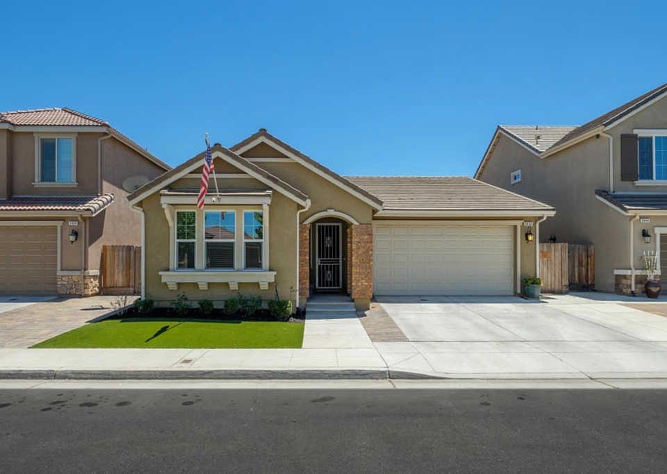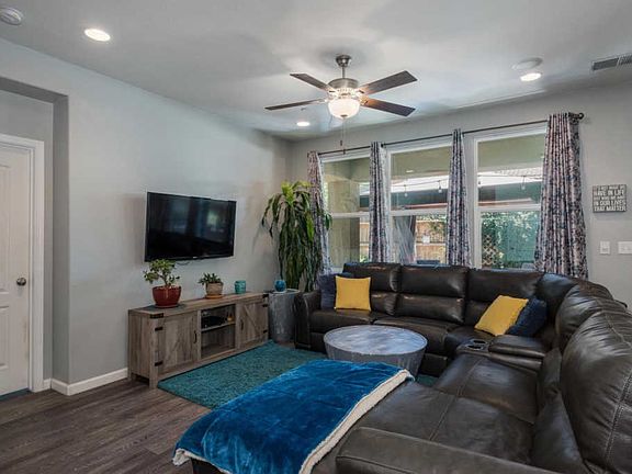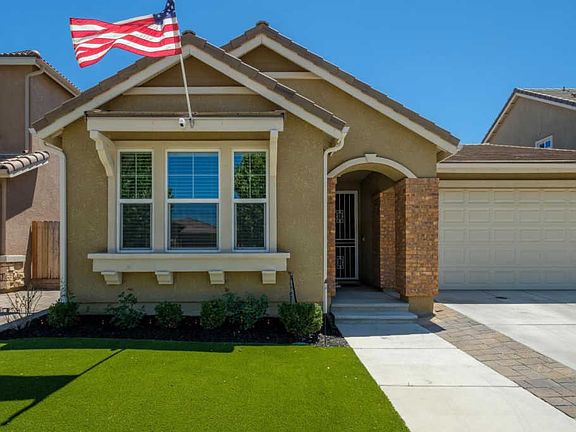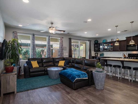 Single story, McCaffrey home in The Gallery, with no hoa & all the extras! This home has 3 bedrooms, 2 baths. The kitchen features granite counters, including island with breakfast bar seating, upgraded 5 burner gas stove with double oven (convection/standard), pantry, white subway tile backsplash, & added cabinets with glass doors. The entire home has upgraded luxury vinyl waterproof plank floors. All bedrooms & living room have ceiling fans. The home also has canned lighting in 2 bedrooms, living room, kitchen, & updated drop down lights over the breakfast bar. The front & backyard have synthetic grass, extra pavers and concrete, for very low maintenance. The backyard has extra poured concrete to extend the patio, misters, planter boxes with sprinklers, storage shed, bar area, & gas stub. 3rd bedroom is currently being used as a den w/ French doors to make the room private, no built in closet, & has glass sliding doors to the wide side yard. Seller will pay off solar loan at Coe.