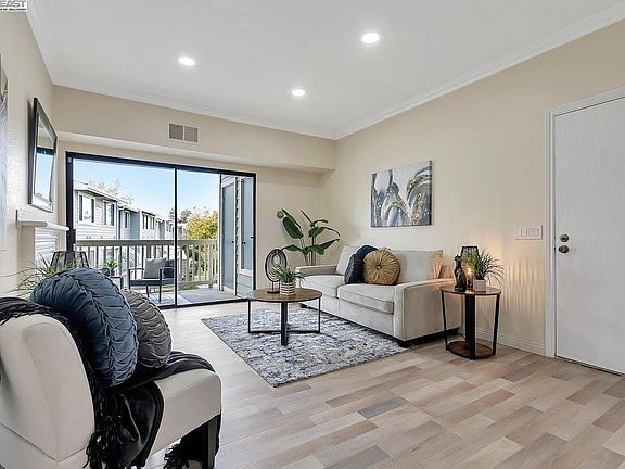 OH 4/20 1-4pm*Gorgeous renovated unit in gated Meadowbrook community! Shows like a model home. Prime interior location. Recent luxurious improvements include 2 elegantly remodeled bathrooms, recessed lighting & updated lighting fixtures, stunning porcelain tile flooring, crown molding, and freshly painted interior. The lovely remodeled kitchen boasts slab granite countertops with decorative backsplash, and new stainless steel appliances. Additional features include energy efficient windows, 2 slider doors to outside balcony, and cozy gas starter fireplace. The large private balcony is set back and provides a relaxing setting to entertain friends and family. The community offers walking paths & greenbelts, swimming pools & hot tubs, and multiple gated entrances and guest parking. Ideal location with walking distance to Amtrak and easy access to freeways, Dumbarton Bridge and BART. Plus, you'll love the proximity to restaurants, shopping, and Alameda Creek/Quarry Lakes Regional Park with miles of biking and walking trails! But hurry, this one will sell fast...this is a must see!!!