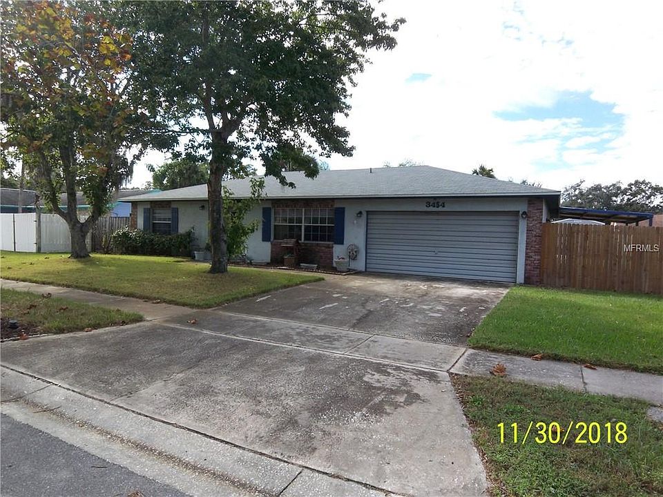 Bank offer this 3 bed, 2 bath, 2 car garage pool home in the desirable community of Chickasaw Woods. Tiled thru living areas, large screened Florida room with fully fenced back yard, carport and garden shed.
