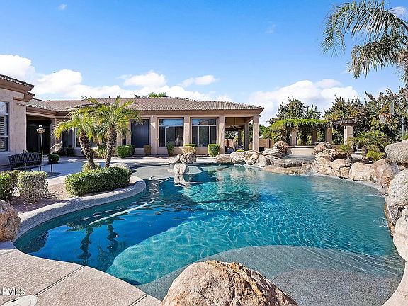This gorgeous 6 bed 4.5 bath home is nestled on .82 acres in the highly sought after gated community of Arboleda in Mesa. This property truly has it all, inside and outside. Home boasts 12' ceilings, 7 parking spaces, RV gate, wine cellar, 2 office/dens, basement, pool, hot tub, extended island, gas range, butlers pantry, jetted tub, spa, and double covered patios just to name a few. It truly is a must see. 1 year lease. Renter is responsible for utilities. Landscaping and pool care is taken care of by property owner.