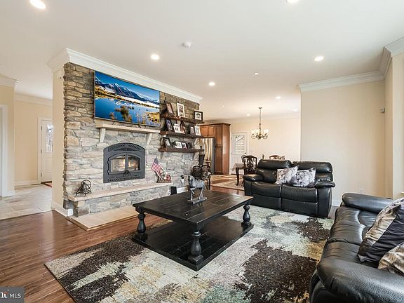 Absolutely gorgeous Custom 3400 sq ft Stone Facade Colonial on over 3 acres! Formal entry with hardwood floors, formal Living Room & Dining room with crown molding & recessed lighting and hardwood floors. Beautiful Eat-in Kitchen with custom raised panel, full overlay cabinetry with detailed crown molding, large island/breakfast bar, level 1 granite countertops, custom ceramic tile backsplash, stainless steel appliances & Custom Staggered tile floor. Door in Kitchen leads to concrete Patio and rear yard. Large Family room with Full stone wall featuring a wood burning fireplace and custom mantle. Covered breezeway with entry to oversized 24~ x 24~, 2+ car Garage. The first floor also offers a Powder room & an Office /5th Bedroom with access to full bath. Gorgeous stained open Staircase w/stairway leads to open 2nd floor landing. Huge Master Bedroom Suite with crown molding & ceiling fan and features French doors into a large Sitting room, walk-in closet & full bath with ceramic tile floor, custom double vanity with granite countertops, soaking tub & large glass & tiled shower. The second level also offers three large bedrooms, full hall bath with large custom granite double vanity & convenient 2nd floor Laundry room. **Seller to fill in pool**