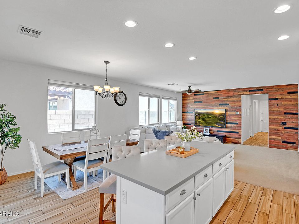 Welcome to your dream home and community! This 4 bedroom, 2 bathroom home is in a convenient location with top-rated schools. The interior features wood look plank tile flooring and luxe carpet, an open floor plan with well sized secondary bedrooms and a spacious master suite. The family room showcases a custom wood accent wall, and the kitchen is bright and inviting. Enjoy outdoor living in the backyard with a covered porch and a grassy play area. Easy freeway access and a park within walking distance!