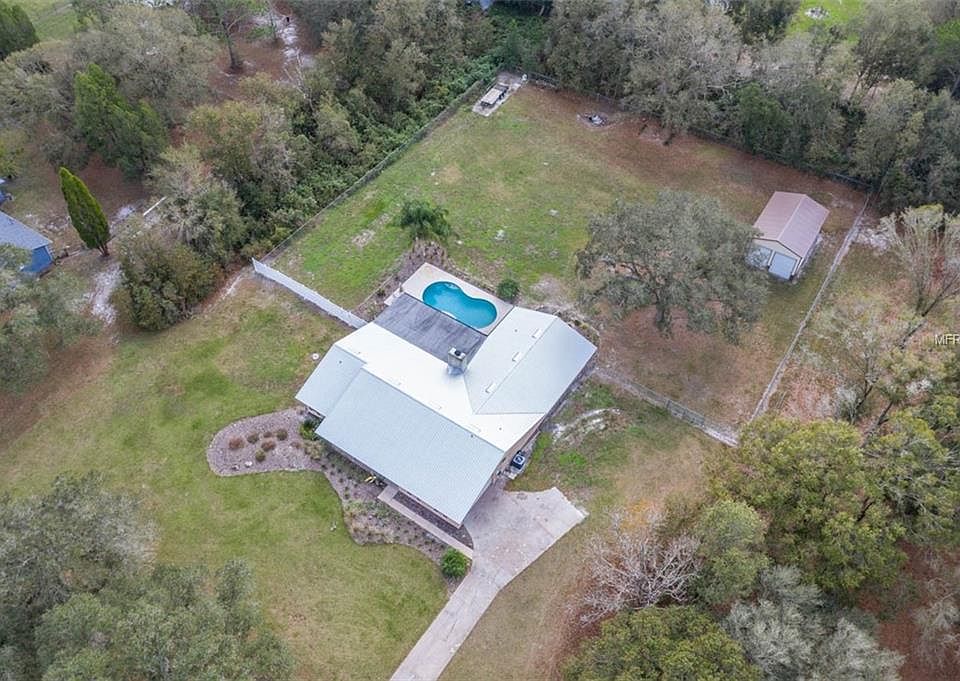 Move in ready! This home is in a coveted south Lakeland neighborhood and is set on 1.56 acres. The 2,911 sq. ft. home has 4 bedrooms and 3 full bathrooms. The new metal roof was installed in 2017 and the detached building in the backyard is 20x30x12; it was built in 2018 and has "drive-thru" roll up doors. The master bedroom has an attached flex room with a large closet which offers many possibilities for its use. Next to the family room is a great entertaining space with a new custom designed wet bar with a beverage cooler. While the interior offers plenty of living space, the exterior has a covered patio with plenty of seating room to enjoy outside dining and gatherings, a beautiful in-ground pool, wrap-around deck and lots of land to play, garden and a spacious fully fenced yard for the animals.
