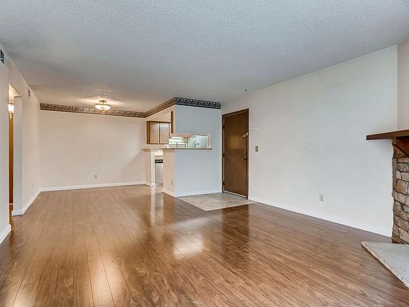 Welcome Home! Enjoy cool evenings in front of the wood burning fireplace and warm nights on the private, covered balcony. Enjoy the home with recently completed flooring throughout the entire house. There is plenty of storage with 3 interior closets (walk-in, standard & linen) and an added bonus is the exterior closet on the balcony for storing outdoor items. Washer/Dryer included. This 1 bedroom condo includes 1 parking space. Home is centrally located, a short walk to the pool, clubhouse & mailbox area. Located to nearby shops and entertainment venues. Close to public transportation & light rail station. Easy access to Buckley AFB, Anschutz Medical Center, DIA, DTC, Downtown. Welcome Home!
