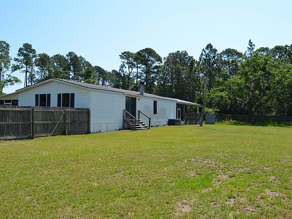 1305 sq ft 3BR/2BA manufactured home offers an eat-in kitchen with tons of cabinet space, large living room with a fireplace and a covered front patio. The master suite has a full bathroom and the side entry carport offers enough room for 3 spaces. The home includes almost 1.5 acres with a private backyard. This peaceful location offers great access to I-95, US 17 and I-295. HUD 091 414307