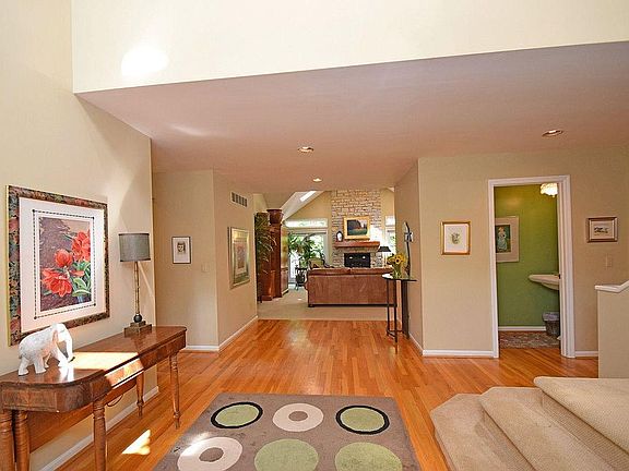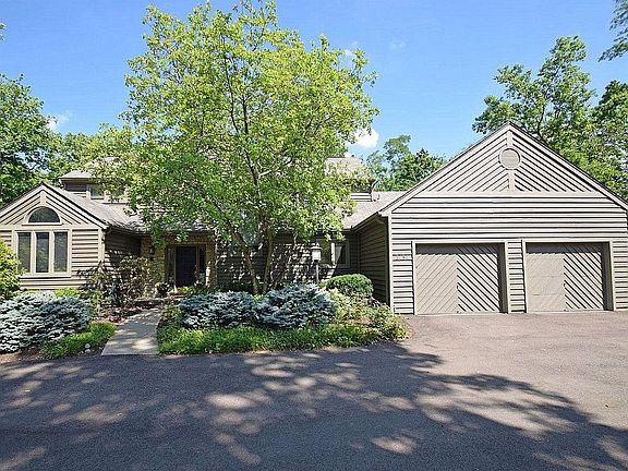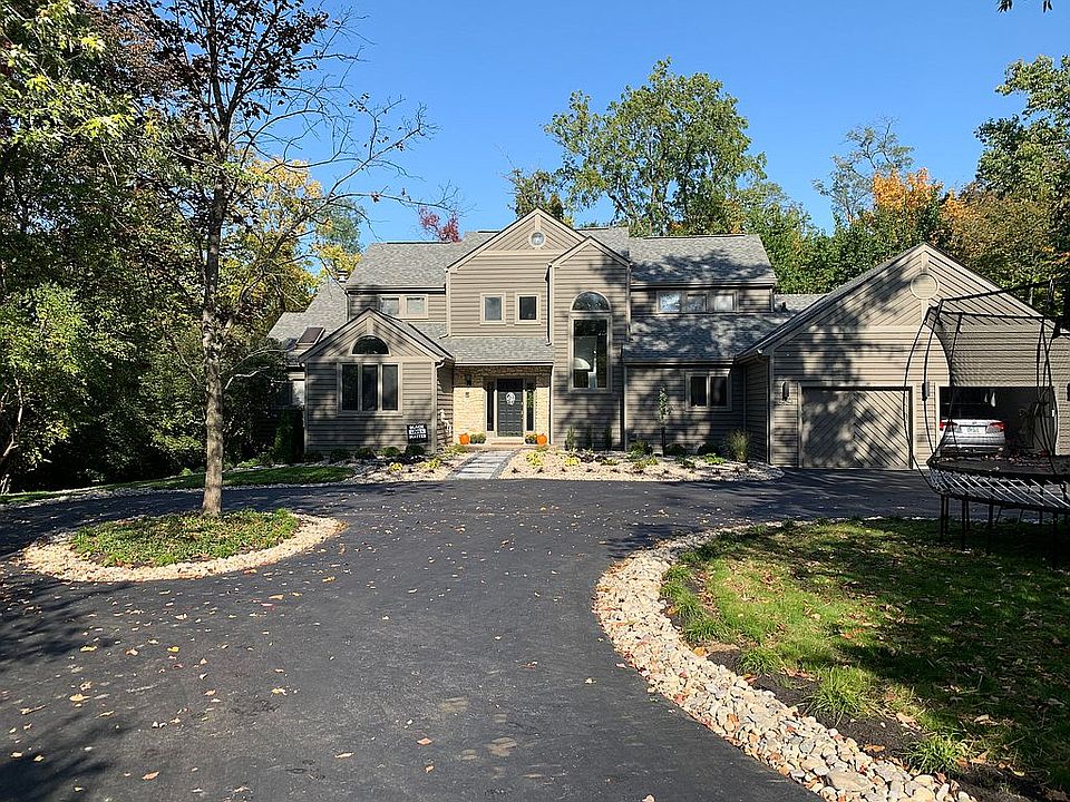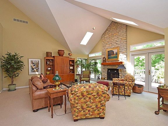 Stunning home on private drive with open floor plan, soaring ceilings, skylights, 1st fl mst ste, lg white kitch, 3 WBFP, expansive w/o LL w/full service bar, 2nd flr loft. Expansive deck w/multi access pts overlooks private yard. This is an entertaining paradise. Opportunity knocks!