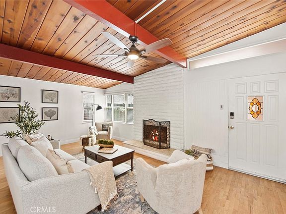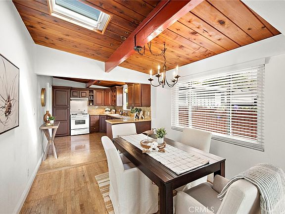 This delightful single-story home at 34546 Via Verde is nestled in the heart of Capistrano Beach, just three blocks from the scenic Dana Point bluffs. Offering a peaceful coastal lifestyle, this inviting residence boasts cool ocean breezes and easy access to the revitalized downtown Dana Point and Harbor. The private front porch invites you to relax while enjoying the landscaped yard with fruit trees. Inside, original hardwood floors and vaulted wood-beam ceilings add character and warmth to the space. Large picture windows in the living room bring in natural light, and the brick fireplace creates a cozy focal point. The kitchen is upgraded with dark wood cabinets, granite countertops, and modern appliances, with a skylight brightening the breakfast nook for a sunny start to your day. Each bedroom is comfortable and spacious, with the main bedroom featuring mirrored slider doors and a ceiling fan. Both bathrooms have been tastefully updated with modern finishes. Outside, the fully fenced backyard offers a private space for outdoor fun and relaxation, perfect for gatherings or quiet evenings. Located within walking distance to Palisades Elementary, Pines Park, and the beach, this home is a wonderful opportunity to enjoy everything Dana Point has to offer.