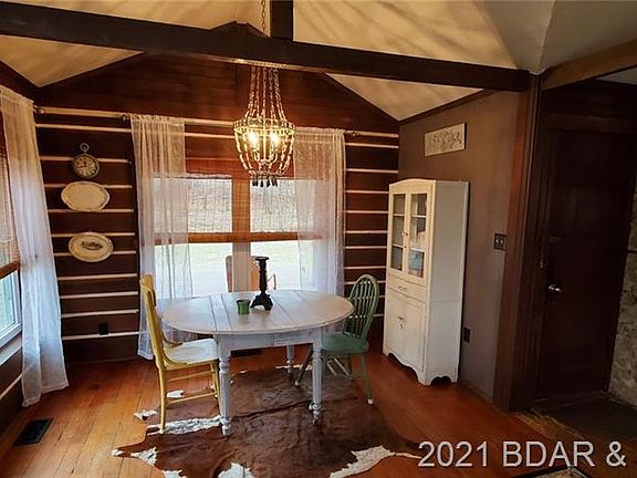 Come relax in the country and get a way from the city life. This would be a great spot to come and enjoy the outdoors or build another cabin on the acreage and rent them out since it's so close to the Lake. Along with the adorable cabin this 6 acres also includes a chicken coop, decorative wishing well, storage building & has plenty of history that includes the original post office cabin for Versailles, MO. This property is perfect if you want a place to enjoy the Lake, you can drive your golf cart down the road to the popular Coconuts Restaurant and the Hillbilly Yacht club where you can pay a small fee to put your boat in and enjoy a day on the the water fishing, swimming, skiing or whatever your heart desires. The rustic cabin is all open with a dining area, kitchen, living room, bedroom and bathroom and nicely decorated with a very cozy feel. Homemade bridge over the wet weather creek and wildlife galore!