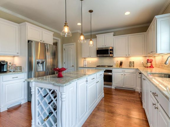 - Kitchen Features: Island, Breakfast Area, Cabinets Stain, Pantry, View To Fmly Rm, Counter Top - Solid Surface