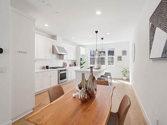 Welcome to your next chapter in the heart of Fremont’s vibrant Innovation District. This beautifully upgraded townhome-style condo in the sought-after Metro West community combines thoughtful design with modern convenience. Inside, you’ll find rich hardwood floors, soft carpet on the stairs, and a bright, open layout that feels both spacious and inviting. The kitchen is a true centerpiece with premium soft-close cabinets, a sleek quartz backsplash, and plenty of room to cook, gather, and make memories. There are smart features throughout—from the ceiling mounted Ubiquiti home WiFi on all three floors to the Ring doorbell and security sensors, smart garage opener with built-in camera, and a 220V car charger in the epoxy-coated garage. Even the solar panels are owned and managed by the HOA for stress-free efficiency. With clean inspection reports, the LG Washtower laundry unit included and window blinds already installed, this home is move-in ready and made for easy living. Just minutes from BART, major freeways, parks, and shops—everything you need is right here!
