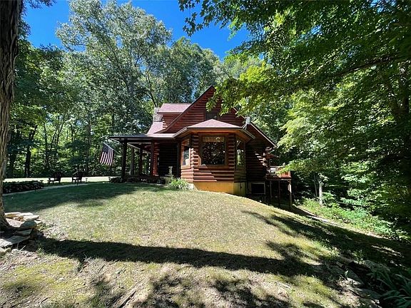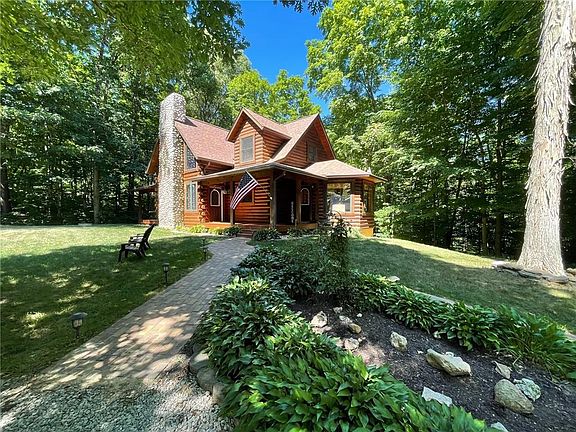 Want to get away from it all? This secluded piece of heaven is calling your name! Raise your children in this beautiful country setting! One Owner extremely well cared for log home on 5 acres with stocked pond, pole barn and finished walkout basement. Enjoy morning coffee on the back deck overlooking mature hardwoods with lots of wildlife. Enjoy afternoon walks with beautiful sunsets and fish feeding at the private pond. New roof in 2020, septic pumped 2/23/22, new floors installed 2017, new Goodwin furnace installed 2014. It seriously doesn't get much better than this.