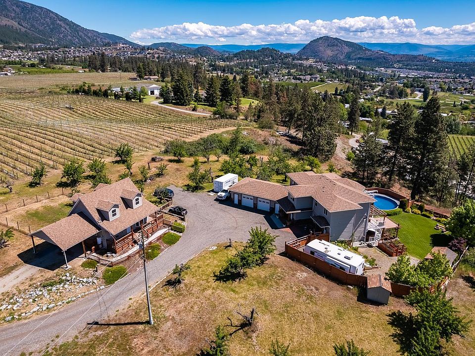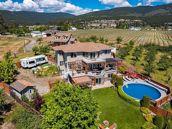 Amazing opportunity to live the country life, just minutes from the city! A stunning family estate on almost 10 acres. There are 3 homes on this property. This is the perfect situation for multi generational families or as an income generator. Surrounded by vineyards & fruit trees this is truly Okanagan living. The main home features beautiful views & an unbelievable outdoor area - with above ground pool. Plenty of land, room for a shop/out buildings & farming. The main home is beautifully kept, featuring 7 bedrooms and 4.5 bathrooms with approx 4500 sq ft. The lower level has a perfectly appointed in-law suite. The charming 2nd home has 2 bedrooms, 1.5 bathrooms, 1235 sq ft, car port and yard. The 3rd home is a Manufactured home - 5 bedrooms & 1.5 bathrooms. It is completely separate with its own driveway, fenced yard & above ground pool. This property is incredibly special, centrally located & filled with so many details, I'd be happy to go over everything with any prospective buyer.