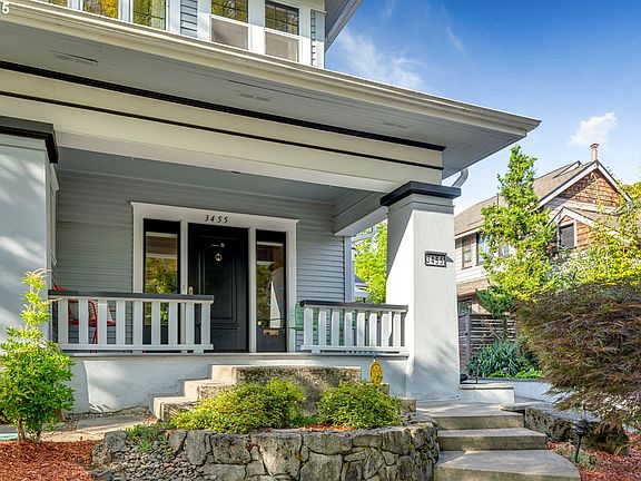 This 1920 Grant Park Craftsman delivers timeless character, elevated design, and all the charm of classic Portland living. With over 3,300 square feet, this spacious home offers room to spread out while maintaining a warm and welcoming feel. The main floor features hardwood floors, crown molding, and a generously sized living room with a gas fireplace. Just off the living space is a cozy light-filled sunroom with built-ins—perfect for reading or morning coffee. The large formal dining room showcases original built-ins and leads through French doors to a den with custom shelving and a built-in desk, ideal for a home office or library. The updated kitchen blends style and function with cork flooring, granite countertops, designer tile, stainless steel appliances including a double oven and cooktop, an island, and a sunny breakfast nook. Upstairs, the large primary suite features hardwoods, two walk-in closets, and a spa-like bath with soaking tub, walk-in shower, and dual pedestal sinks. A second oversized bedroom, second full bath, and laundry complete the upper level. The second bedroom could easily be converted into two bedrooms —bid available upon request. The finished basement offers a family room, fitness area, wine cellar, and generous storage. Right off the kitchen is a show-stopping covered patio with an outdoor kitchen granite counters, gas grill, beverage drawer, fireplace, ceiling fan, and mounted TV, creating the ultimate all-season hangout. The private, landscaped backyard completes the setting. Ideally located between the Hollywood and Broadway districts, with markets, shops, parks, and Beverly Cleary Elementary and Grant High school all close by, this home offers the best of classic Portland living.