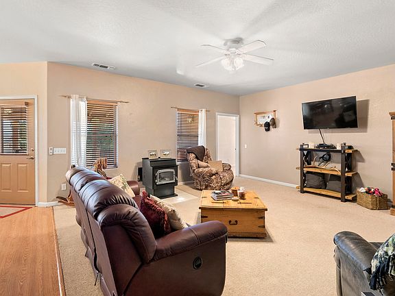 This beautiful home boasts a spacious 4 bedroom split floor plan with a large living room including a pellet stove to keep the chill out on those cool evenings. Enjoy sitting on your covered patio watching your family hangout in the huge yard. Need extra storage? Large garage/shop with tons of space, 8ft tall garage doors and even a small play house or storage shed sits on this almost half an acre lot. Property is fully fenced and has Rv parking and its own well if you want to keep your grass green without extra water costs. You don't want to miss this beautiful home.