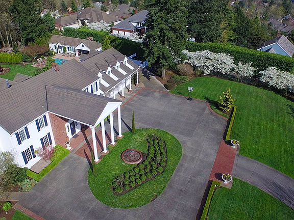 Private estate in sought-after Barrington Hts. Guest House with cabana overlooking pool. Extensive remodel Colonial Revival-style home w/ gourmet kit, open flr plan, sunrm, media rm, master suite with sitting rm, wine rm, much more. Spectacular details: wood & marble flrs, crystal chandeliers, decorative plaster ceilings. Mt. Hood views. Prof lndscp, gazebo, patios, waterfall, pond, gardens. Backs to 5 acres of greenspace.