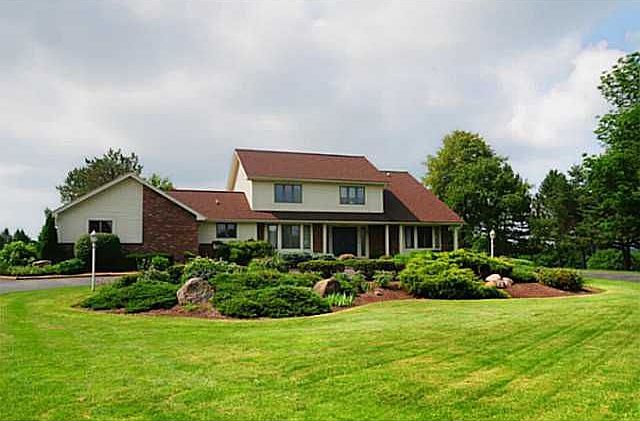 Privately situated in sought-after Mendon Countryside. Picturesque property on 17.8 acres. Yes you can subdivide. Horses allowed. 3362 sqft. Family Room has stone fireplace, cathedral ceilings. First Floor Master. Bright Kitchen, Open Floor Plan. 3 car garage, Walkout Unfinished basement. Close to Country Club of Mendon.
