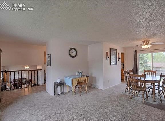Lovely 3bed, 3bath, 3-level home w/ beautiful curb appeal. Fresh exterior paint & new landscaping. Main level sizeable living & dining rooms are carpeted w/ a walk-out to large back yard & patio. Great views of Pikes Peak Kitchen has updated counters & new stainless appliances w/ pantry. Upstairs features master bedroom, ¾ bath & new shower. 2 more beds & upgraded full bath. Spacious lower level has L-shaped family room w/ area for office, tv watching & room to snuggle up to roaring fire, laundry & 1/2 bath.