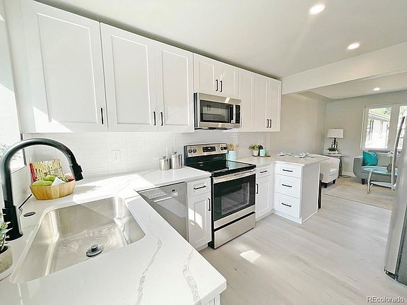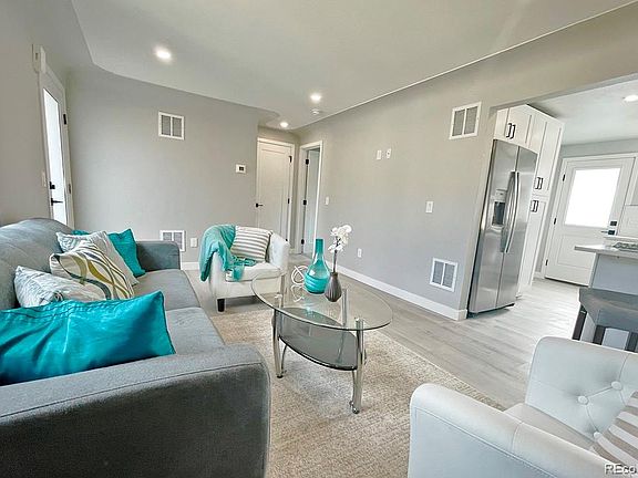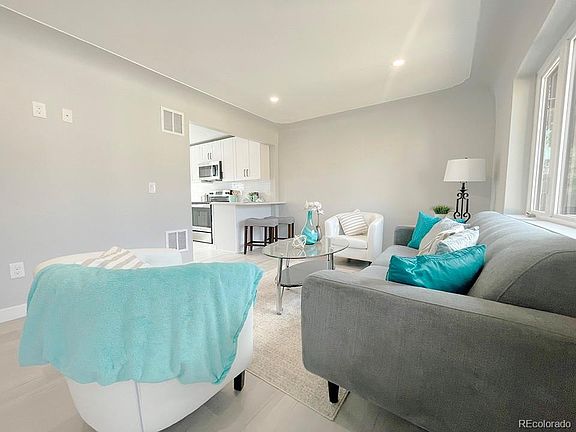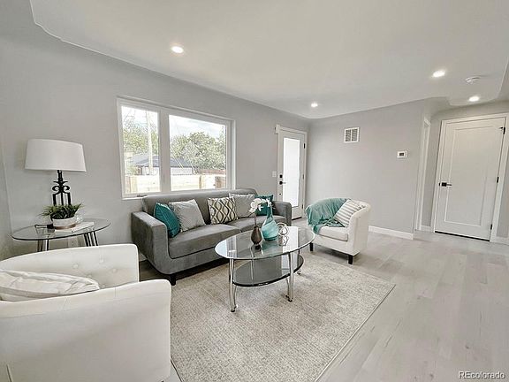 Rare opportunity for a beautiful, fully renovated 1 bed/1 bath unit in 4plex just a few blocks walking distance to Sloan's Lake. Uniquely large lot in quiet neighborhood with spacious, fenced yard and newly paved concrete parking in rear with 4 deeded spaces. Renovation includes: new windows, roof, systems (electric, HVAC, Central AC), flooring, paint, etc. Kitchen and bathroom with beautiful new shaker cabinetry, quartz countertops, porcelain tile, and stainless steel appliances. New sod and landscaping. No HOA. Don't pass up on this unique property in city living with yard space and ample parking!