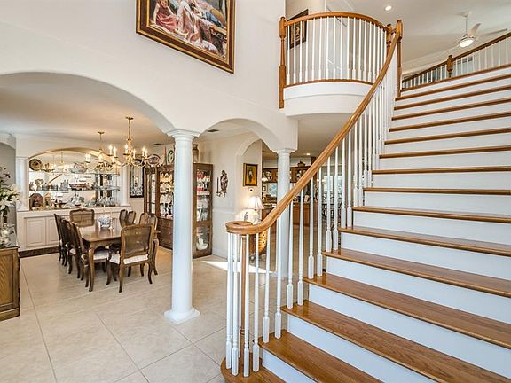 Beautiful and impeccably maintained Key West Style home available for immediate occupancy! Enter the lead glass doors and you are immediately greeted by a beautiful sweeping staircase, gleaming wood floors and a large formal dining room with built in cabinetry and granite top. Directly to the right of the entry is a full bath and bedroom or office. The kitchen is quality through out with stainless steel appliances including refrigerator, dishwasher, microwave, double ovens, wine cooler and a 5 burner gas cook top. The large island provides plenty of storage and the breakfast bar comfortably seats 4. The breakfast area is large and allows for a full suite of dining room furniture. The great room with recently installed gas fireplace and large wet bar has soaring ceilings and french doors that lead to the lanai. The master bedroom is spacious with a sitting room or office. The master bath has double sinks, whirlpool bath and a large walk in shower. There is a nicely finished bonus room with full bath with two sliding doors that lead to the pool area. The additional 2 bedroom are above average in size. Other finishes include crown moldings, plantation shutters and much more. The Salt Water Pool is heated and a new Spa was just installed. The dock with 10,000 lb boat lift was recently updated with aluminum skids, lights, security fencing, underwater lights, power and water. The home is situated on a very wide canal that leads to a cradle lift that has you and your boat in the Gulf of Mexico in just minutes!