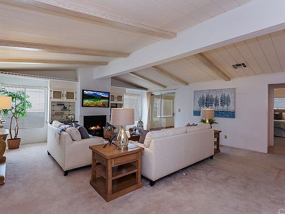 Located in a beautiful resort like community & YOU OWN THE LAND. The large living room features vaulted ceilings, open concept layout & cozy fireplace. This home has two bedrooms/2 baths plus an office & bonus room. The kitchen & dining areas are light, bright & located off the living room. Master bedroom suite is located towards the back of the home & next to the bonus room. The second bedroom, bath and office are located towards the front of the home. There's also a laundry room & small patio. Rancho Carlsbad is a best kept secret offering a resort like setting for the 55+ community. The beautiful Spanish style architecture and setting offers amenities for an active lifestyle or just for enjoying the beautiful private surroundings. It is gated and has a 24 hour guard and onsite management. There is a huge clubhouse for dancing, parties and more, billiards room, shuffleboard, ping pong, workout equipment, library, huge pool and spa, hiking trails and RV storage. It is adjacent to a 9 hole executive golf course, driving range and putting green (no need to leave community). The well maintained grounds have large ponds with fountains and lily pads and accented with wooden walking bridges. A tree lined meandering creek runs through the grounds and ducks and other wildlife can be watched enjoying the stream. This is a beautiful community and a wonderful lifestyle. Just a short 10 minute drive to the Carlsbad beach and minutes to shopping and restaurants!