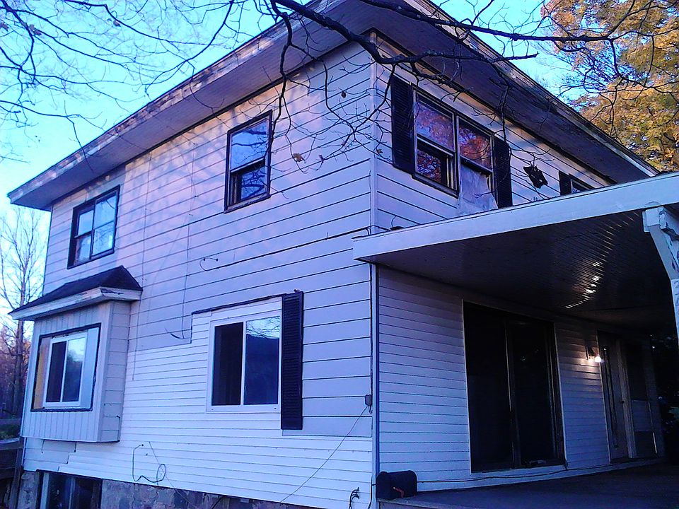 Flippers Dream. Large four bedroom farmhouse. Big covered front porch with a beautiful view. Full basement with walk out sliding glass door. New furnace and water heater. Yard has many big maple and walnut trees. Upon a hill with circle drive. On four acres that has an old 40x60 barn. Located on a paved road. Needs New roof and kitchen and bath remodels.