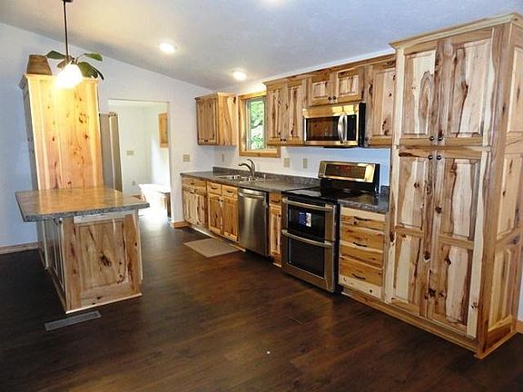 MOENS LAKE DRIVE. Completely remodeled 3BR 2BA ranch home on 1.19 acre wooded lot surrounded by Moens Lake Chain, bordered by State Forest and on a black top road just 10 minutes from Rhinelander. Open concept living with 6" laminate in the living/dining/kitchen, custom hickory cabinets with soft pull hinges & silent closures, x-large peninsula & high end new appliances. Patio doors from the dining area to 12x14 rear deck overlooking private wooded yard. Mudroom off kitchen offers custom storage in the wall of cubbies & bench plus large closet and main floor laundry hook-ups. Master BR has 12x7 custom walk-in closet. Finished lower level w/3rd legal bedroom, full bath, office/nook area and large rec room with carpeted open staircase to the main level. Other amenities: New wiring, plumbing, furnace, A/C, showers, sinks, faucets, 6-panel solid pine doors, light fixtures, pot lights, windows, doors, vinyl siding, peaceful location, plus 3 car detached garage. HOME WARRANTY INCLUDED!