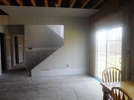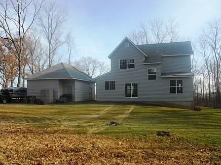 10 acre , scenic wooded setting with an unfinished 4 bedroom home built in 2008.Exterior is mostly done except front porch. Interior has all framed rooms, electric has been run, about 3/4 drywall is done. Home needs a well, septic,furnace plumbing,duct work. Property is perked for conventional septic. Nice floor plan, glass slider off kitchen has a great view of the woods. There is abundant wildlife roaming the trail filled woods . Berries and morels grow wild. Mostly hardwood trees. Property includes a small , cozy hunting cabin. This home just needs you to bring your hammer and ideas.