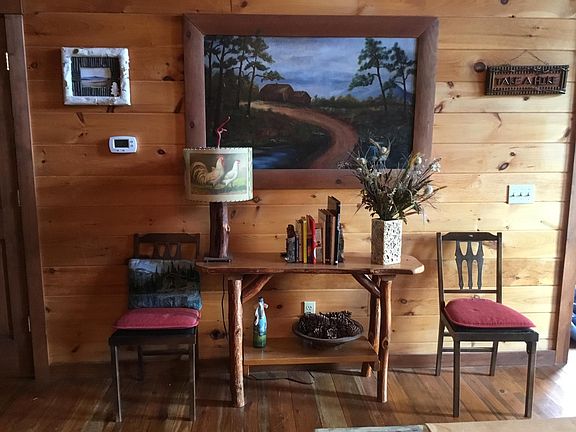 Looking for the perfect, relaxing getaway? Custom cabin with over 5 acres, has been lovingly cared for from top to bottom, is ready for it's next owner as a private residence or you can make it into a lucrative investment property. Enjoy spending time with family and friends in the spacious family room just off the kitchen. Family room features a fireplace and views off the back deck. Two bedrooms upstairs, one with a full bath and the other with a half bath plus office area.Lower level has one bedroom and one office(currently being used as a fourth bedroom). Also on the lower level, you will find a full bath, laundry room and den w/ pool table.This home is being sold furnished and decorated! Enjoy the sounds of nature on your deck or soaking in the hot tub.No HOA,new HVAC. One owner home, first time on the market. This home has only been used as a second home. Schedule your showing today!