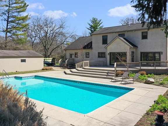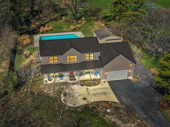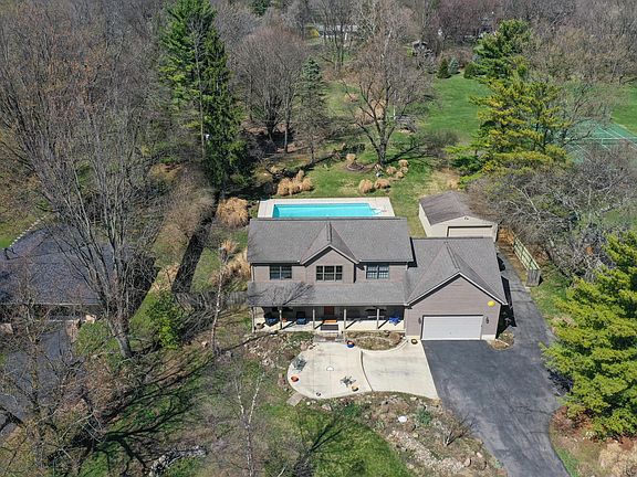 NEWLY BUILT IN 2003!!! This family home burned down in 2002 and a new home was built adding a basement with steps leading to/from the attached garage for easy storage access. On over 1.2 acres with a large inground 20 x 40 foot pool, layered deck; 2-car attached and a 2-car detached garage. Privacy surrounds you in the parklike setting; fenced-in sections of 1.2+ acres are perfect for summer fun. The large double gates in the back open up and lead to the back of the property perfect for a future car/hobby barn. Open 2-story foyer, private office, oversized great room with lots of windows, dining area with great views of the pool, open kitchen with 42'' cabinets, large first floor laundry room + storage. All three bedrooms are upstairs; spacious owner's suite bedroom, bathroom and closet