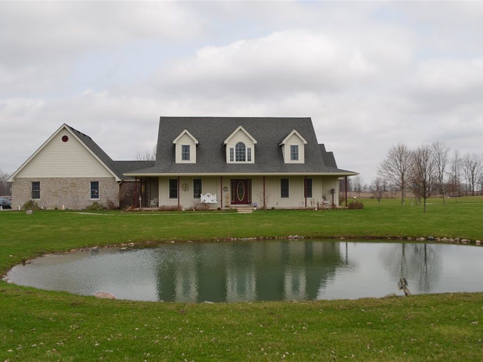 This beautiful 4BR 2 1/2BA home is situated on over 6 acres with 2 ponds. Features include LR with fireplace and vaulted ceilings, beautiful entry way, fully applianced kitchen with breakfast nook, island and hickory cabinets, separate DR, large MBR suite on main level, large laundry room with cabinetry and 29x27 heated garage. Geo thermal heating and cooling and so much more!