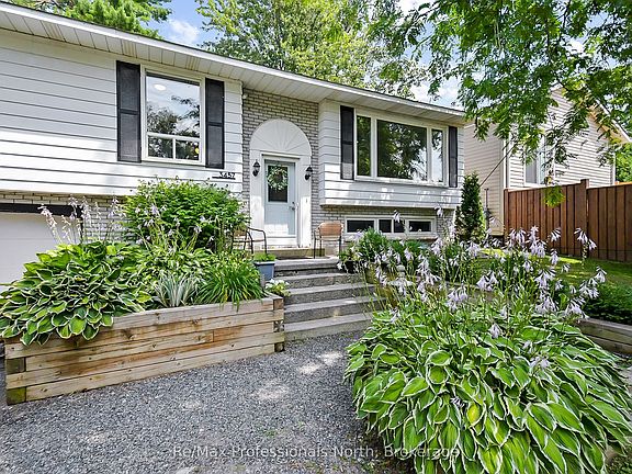Welcome to this spacious 5-bedroom, 2-bathroom bungalow nestled on a beautifully landscaped lot just steps from the shores of Lake Couchiching. With a fully finished basement and a built-in single-car garage, this home offers both functionality and charm in a peaceful, family-friendly setting. The main floor boasts an open-concept layout with a bright living room, dining area, and kitchen featuring a walkout to the large back deck - perfect for entertaining. Overlooking a private, fully fenced backyard, you'll find mature gardens, a built-in hot tub (sold as is), fire pit and a charming cabana area ideal for relaxing or hosting guests. The upper level also includes three generous bedrooms and a spacious 4-piece bathroom adorned with marble tile, a dressing table, and ample storage. Downstairs, the finished basement provides flexible living space with two additional bedrooms, a rec room with a cozy wood-burning fireplace (which could also serve as another bedroom), a laundry closet, and a 4-piece bathroom with a large corner tub. With inside access to the garage from the basement, there is great potential for an in-law suite or secondary living area. Additional highlights include a double-wide paved driveway for ample parking, and access to a private beach park just minutes away, featuring a sandy shoreline, kids play structures, and a boat launch with breathtaking views of Lake Couchiching. Whether you're looking for a family home, cottage alternative, or multi-generational opportunity, this versatile property blends comfort, outdoor living, and unbeatable access to Simcoe waterfront amenities.