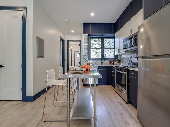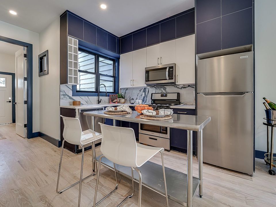 Investment opportunity awaits at this freshly refinished 2-family home in the heart of Jersey City Heights. A dream for both the owners and the potential renters, this 3-story property offers high-end finishes, beautiful backyard, and an unbeatable location with access to parks, shops and restaurants, and easy NYC access. Stylish upgrades include light oak hardwood floors, high ceilings, beautiful bay windows and matte black trim throughout. Contemporary kitchens showcase modern matte black flat-front cabinets, stunning marbled quartz counters and matching backsplash and stainless appliances. Bathrooms feature beautiful dark porcelain slab tile to the ceiling, pattern accents and smart mirrors. The downstairs unit hosts a spacious 2-story, 2 bed and 2 bath layout with an added bonus room downstairs finished with herringbone wood tile. Step out back to an oversized private backyard primed for ideal outdoor living. Highlights include an extravagant primary bathroom finished with floor to ceiling tile, double vanity, and an extra large full-glass sauna shower. The upstairs hosts a thoughtfully designed 2 bed, 1 bath floorplan with features like an open living, kitchen and dining area, plus a jack and jill bathroom with a giant soaker tub. A super central location in one of the most coveted neighborhoods puts the cherry on top. Jersey City Heights is known for its eclectic art scene, tight knit community, oversized parks and exceptional Manhattan skyline views.