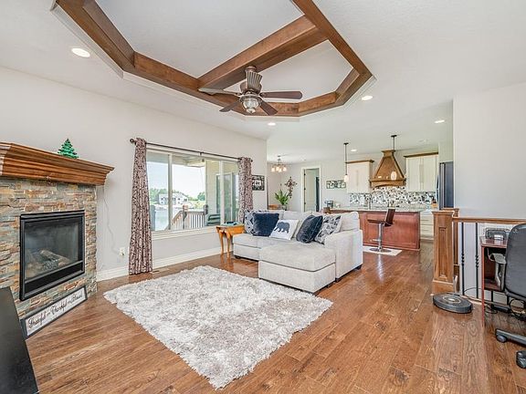 Located in SW Wichita with easy access to 235. This luxurious home is located on a serene and private lake with amazing views. The sandy beach is perfect for swimming, sunbathing, and enjoying the incredible scenery. The open layout of the main floor is great for gatherings and the dry bar in the basement makes entertaining a breeze. Basement also includes two bedrooms and two baths. There is also main floor laundry room for your convenience. Upstairs, there are three bedrooms including a master suite (all new carpet has been installed in each of these rooms) with its own private bath and deck overlooking the lake. The patio and covered deck are perfect for relaxing outdoors and taking in all that nature has to offer. Neighborhood amenities include a basketball/pickle ball court, and playground. Lake does allow access for boats but they must be electric. Specials are paid off on this beautiful home! Come checkout this show stopper today!