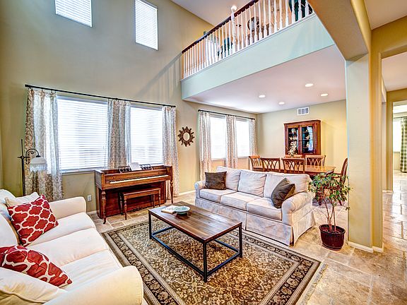 Gorgeous home located in the highly desirable Fairways community featuring solar panels, 4 bedrooms, 3 full baths, over 3,195 sq feet of living space, as well as a 3 car garage. Entering the home, we see the living room is open to the formal dining space, which features travertine floors, high ceilings, and plenty of natural lighting. Moving into the kitchen, we see granite counter tops, a kitchen island, stainless steel appliances with dual ovens, recessed lighting, walk in pantry, and ample amount of counter space - great for studying or office work. The family room is open to the kitchen, with travertine floors, updated ceiling fan and gas fireplace. Downstairs features a bedroom perfect for guests with newer paint, and dual sliding closet doors, as well as a full bath with tile counter top, and a stand up shower. Going upstairs are mahogany hardwood stairs with matching railing leading to a loft. The master bedroom has his and hers walk in closets, on suite master bath with travertine floors, tile counter tops, dual sinks, soaking tub and a tiled stand up shower. Also upstairs, we find 2 more spacious bedrooms, with dual sliding closet doors and ceiling fans. The guest upstairs bathroom has dual sinks, tile floors, and a bath/shower combo. The backyard is very nicely landscaped with new sod, stamped concrete, and fruit trees. The home is located inside the Fairways Community- which offers many amenities from wifi, 24hr gym, pool, spa, club house access and much much more!