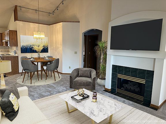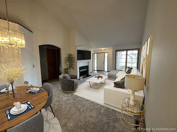 Spacious one level townhome is located just minutes from Riverdale Shopping Center but tucked away on a quiet street in a great neighborhood. Open floor plan with vaulted ceilings, large living room with gas fireplace, spacious kitchen and bright sunroom. Primary bedroom has a walk-in closet and walk-thru bathroom. Many updates including fresh paint, new carpet, light fixtures, water softener, water purification system in kitchen, new faucets, new roof and new sliding door in sunroom. Lots of storage including a finished storage room/pantry with shelving and pull down attic storage. Outside you will love the huge yard with mature trees for privacy, the patio for relaxing and a walking path that leads to a beautiful park. Imagine having everything you need, from local eateries to big box stores and healthcare within a 5-minute drive. Don't miss out on this great opportunity for hard to find one level living in a great location!