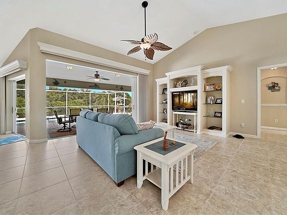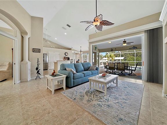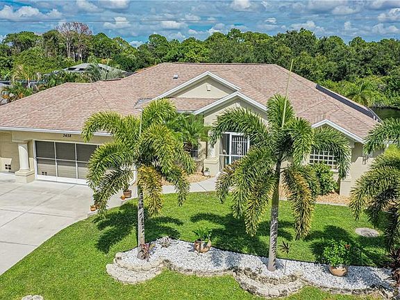 Gorgeous Water Front Home. 3 Bed, 2 Bath plus a Den/Office and a 3 Car Garage with a Heated Salt Water Pool. Quick Access to Charlotte Harbor and Fisherman's Village. This well maintained home features Tray Ceilings, Built- in Entertainment Center, Tile Flooring, Recess Lighting, Large Owner's Suite includes a Sitting area and the en-suite has a Custom Built Walk-in Shower, Dual Sinks, Garden Tub, and Pocket Sliders, 2017 Water Heater, HVAC 2016, 2020 New Pebble Tech in pool and color changing LED lighting in Pool, variable rate Pool Pump and Filter System. Out-door Shower, Child Safety Gate. The Wooden Boat Dock with Lift has a New Canopy, Aluminum Bunks and Wrapped Poles, Water and Electric, Non Slip Coating and removable Safety Rails. 2017 Whole House Reverse Osmosis, New Gutters, Screened in Garage, Irrigation System, and Hurricane Shutters. Gulf Cove is a Waterfront Community offering a Boat Ramp, Fishing Pier, and Park. Short distance to Beaches, Medical, Shopping and Dining. Don't miss this one, Call today to schedule your showing.