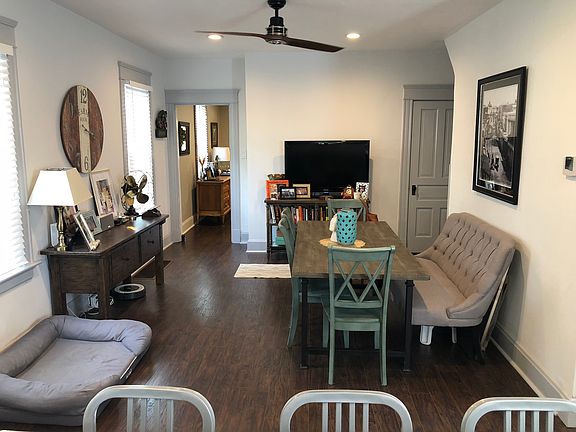 Great house with updated kitchen and off street parking. Pet friendly (Secure doggie door) 1,216 Square Feet 1.5 Baths. Heat Floors in Full Bath Stainless Steel Appliances Italian Gas Range and Miele Air Mover Open floor plan Kitchen/Dining Room Walk in closet in Master Bedroom 2 Car Garage (Small cars can fit, or use for storage) Fenced in Back Yard Shaded Back Deck Covered Front Porch Drive-way for Off Street Parking Current tenant has lived there for 6 years and only moving because they bought a house down the street. 1 year minimum lease. Lower lease rate for multi-year lease. Renter pays all utilities.