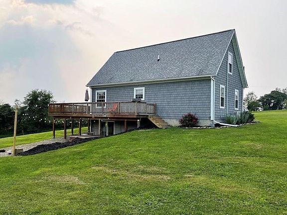 Three bedroom home is deceiving, sitting on the most beautiful setting of nearly 3 acres. Nice open layout allows plenty of light into the home. Up to date kitchen with granite countertops, plenty of cabinets and breakfast bar. 1st floor has hardwood floors two large bedrooms and full bathroom. The 2nd floor has a third bedroom, an additional full bathroom and loft area overlooking the countryside . The lower level is partially finished and walks out to patio area. The wraparound deck is perfect for sitting outside and enjoying the scenery. home is well cared for in every respect..