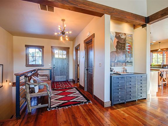 Wonderfully crafted custom home built by Parks Angel Construction in 2012 and sited to block high summer sun but allow passive solar in winter. Main floor features open floor plan living room, dining area and kitchen, with wraparound covered decks on south and west sides to take in amazing views and light. Gourmet kitchen features five burner Bertazzoni gas range, rustic beech wood cabinets, antiqued black cambrian granite counter tops and all stainless steel appliances. The main level master bedroom suite has a full bath with heated floors, claw foot tub, walk in shower and honed Nordic black granite counter top. Between garage and kitchen is a large mudroom, walk in pantry and laundry room, with stairs leading up to a large guest suite with full bath and sitting area. The daylight lower level contains a family room, third bedroom and full bath, storage area, utility room and unfinished fourth bedroom. Seller willing to complete 4th bedroom for Buyer bringing strong offer.