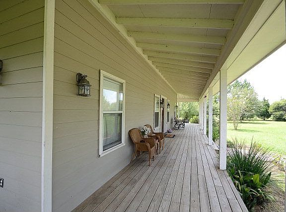 Country living but with easy access to everything! Cottage style home w/ metal roof is surrounded by 4.8 gorgeous acres. There are wide open spaces and shady copses perfect for lazing away in a hammock. Front fenced enclosure or pasture. Circular drive & decorative trees. Enjoy your expansive front porch view & ramp access. Horses are up to you. Home features an open floor plan w/ high ceilings, fireplace in the living room, split bedroom plan, covered & screened back porch with hot tub that is just off the master bedroom. Large storage building & lean-to with electricity. This property is USDA eligible (no down payment).