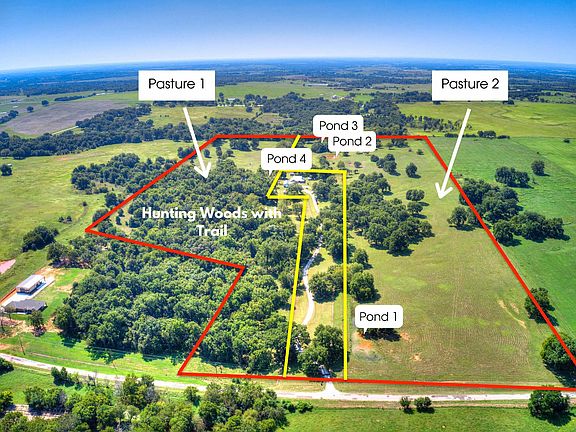 NEW PRICE!!! - Looking for hunting land combined with livestock pastures & personal leisure space? Here it is! Splitting the pastures to the west & thick woods to the east, youâll find 4 ponds AND a newly constructed, insulated 5 overhead door shop (2 extended height) & GORGEOUS remodeled, spacious home. This 73+ acre farm has it ALL! A rare turn-key acreage property, this beautiful farm has been completely rejuvenated, upgraded & maintained. Key features: new fencing throughout, winding gravel drive, 150+ pecan trees, stocked pond, established hunting woods (with easy to navigate trail throughout), full house generator, commercial HVAC system, water softener, chicken coop, loafing shed, metal barn, raised garden beds, she-shed, granite, tile, new interior & exterior paint, metal roof, rural water, two propane tanks, & livestock wells. Seriously, the list goes on! The work has been done, this oasis is ready for the new buyers to come enjoy it!