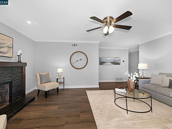 Welcome to this rarely available 4-BEDROOM, 2 BATH, SINGLE STORY home with an attached 2 car garage! Fabulous curb appeal, and RECENT MODERN UPDATES THROUGHOUT! Fall in love from the moment you walk through the door! The spacious living room is the perfect place to gather with family and friends. Enjoy the gorgeous dark-toned, wood-look floors, designer paint colors, crown molding, decorative brick fireplace, and newer double paned windows including a sliding door, for seamless indoor/outdoor entertaining. Step into the cheerful updated eat-in kitchen with wall-to-wall custom built storage cabinetry, stylish backsplash quartz countertops, and timeless white cabinetry. The ideal place for creating memorable meals. Unwind at the end of the day in your primary bedroom retreat with en-suite bath. Three well-appointed secondary bedrooms and luxuriously updated hall bathroom. Create the backyard of your dreams in the private yard with a permitted covered patio, raised garden bed and room for a play structure and more. Got Toys? The large side yard provides ample space for them. New HVAC was installed in 2021. Convenient location! Just minutes to freeways, shopping, restaurants and more. This home is a must-see! Open Sat & Sun 1-3.