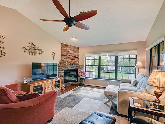 Beautiful cozy condo light & bright in the best location in the community. Rarely available 3 bedrooms 2 baths with water & two fountain views from your enclosed balcony & living room. Enjoy the warmth of your fireplace. Wood laminate flooring throughout the main living areas. You will delight in the updated kitchen w/granite counters & wood cabinetry, S.S. appliances,& more. Main bedroom water views, an updated bath, 3rd bedroom is a den. The 2nd bath is also updated. Front load washer & dryer & more. Community has a park like setting, clubhouse, pool, fitness center, billiards, tennis & pickle ball courts, & much more .Fantastic location close to everything, shopping, entertainment, restaurants, parks, beaches & more. Perfect for the Snowbird or enjoy the wonderful Florida life!